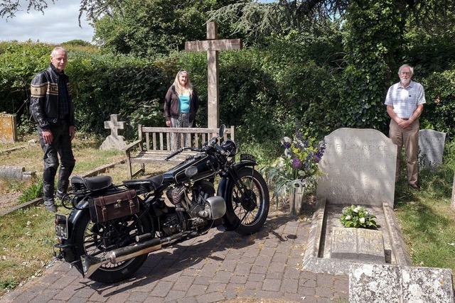 On 19th May 2020, the 85th anniversary of Lawrence’s death, the Society, continued the arrangement for flowers to be positioned at his graveside in Moreton. On another beautifully warm and sunny day, some readings were made by Society members and we were pleased to be joined by a 1933 Brough at Moreton.